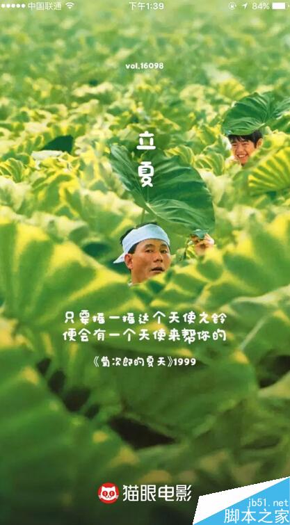 说一下自己家的产品。一般情况,猫眼每天都会推出一张启动图,内容是电影海报 一句话文案,负责这件事的运营,是一个有几千部观影量并且很有审美追求的同学。随便截一张今天的,下图: