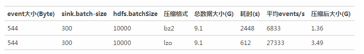 首先,美团的HdfsSink写到hadoop的文件采用lzo压缩存储。 HdfsSink可以读取hadoop配置文件中提供的编码类列表,然后通过配置的方式获取使用何种压缩编码,美团目前使用lzo压缩数据。采用lzo压缩而非bz2压缩,是基于以下测试数据: