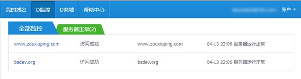 当然,他还支持PING检测和DNS监控,支持历史数据的查看等,确实是剩下不少为了监控网站而大费周章的工作。