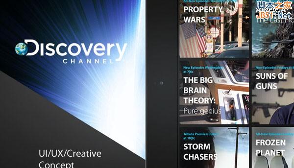 Serge Mistyukevych的Discovery Channel Ipad聪明地使用浏览器和设备截图层叠在不显眼的黑色背景上,呈现出了一种圆润而华丽的感觉。