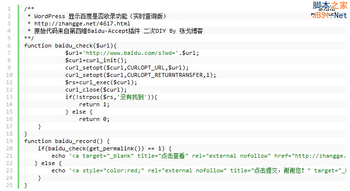 原版缺点:每次打开页面都需要在百度查询一遍,严重拖慢速度!当然可以利用缓存插件解决此问题。