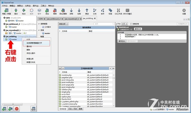 第一步让我们返回代码库页面(当然是你关联好的代码库,而不是其它的,笔者本次关联的是jae_zolzblog代码库),在右下角再次被ZOL水印盖住的地方有一个地址,将其复制一下。