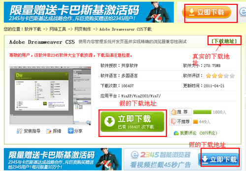 (1),一些网站为了短期的盈利,于是就不计后果在一些网站的显眼位置布置大量的广告,这样做可能会让我们的用户找不到真正的内容或者是迷惑用户点击到了广告,对于用户造成不佳的用户体验。这种现象最常见到的要数软件下载的网站开发站点,如下图所示,用户很难找到真正的下载地址。