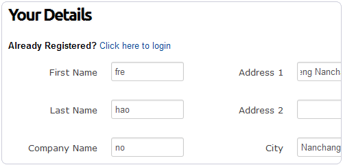 5、点击购买,进入WHMCS账单系统,随便填写一个域名。