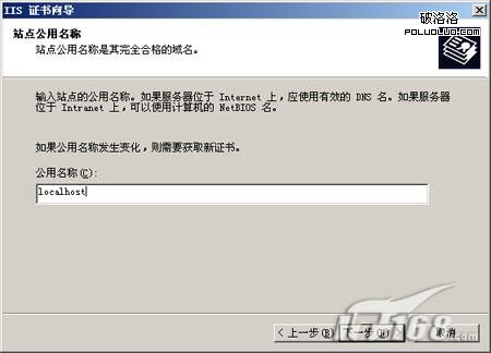 第九步:在站点公用名称窗口输入localhost。(如图18)